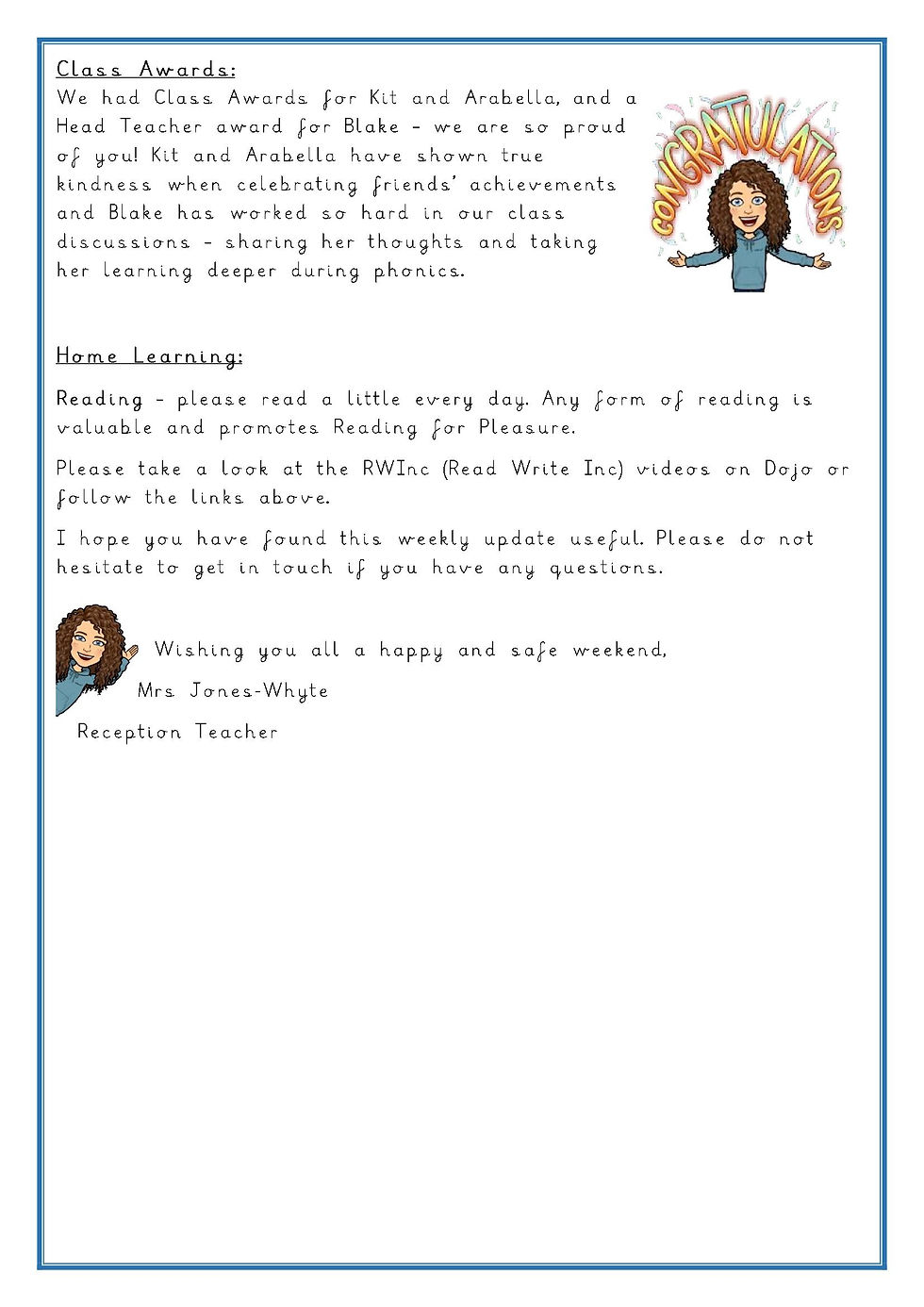 Reception Weekly Letter 06/10/2023